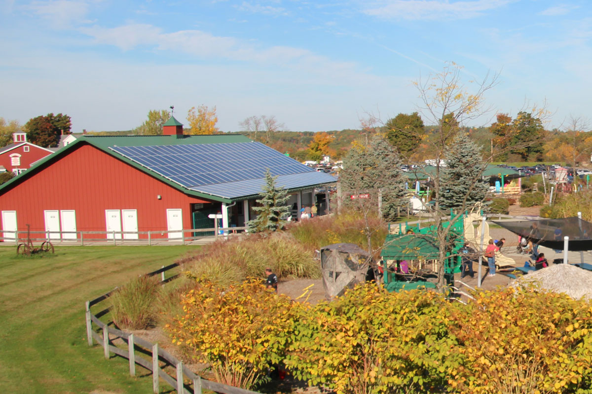 We started our solar endeavors in 2011 with the development and installation of Farmland’s Solar System – 144 solar panels on the barn roof of the Udder Rock. Farmland’s Solar System generates enough electricity to power 4+ homes…That’s the equivalent of one-thousand households watching an hour of Paw Patrol every day! Our solar array reduces the farm’s carbon footprint, equating to driving your car 36,000 miles per year. Imagine, driving from Sterling, Massachusetts to California 12 times!
